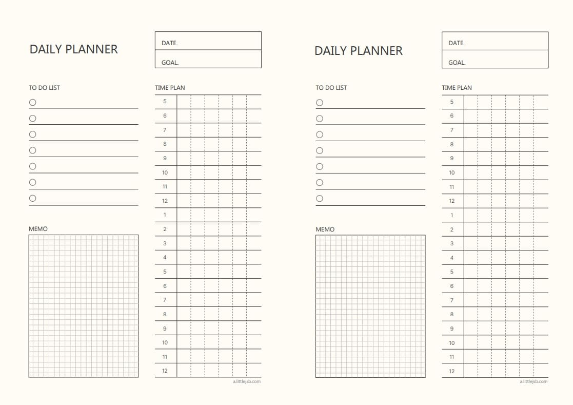 데일리 타임 트래커 플래너 PDF 양식 A4, B5