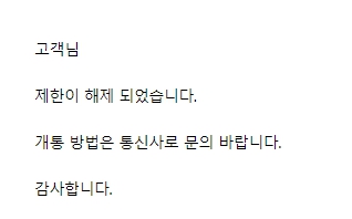다시 작성해서 보내니 해제 되었다고 메일이 왔습니다.