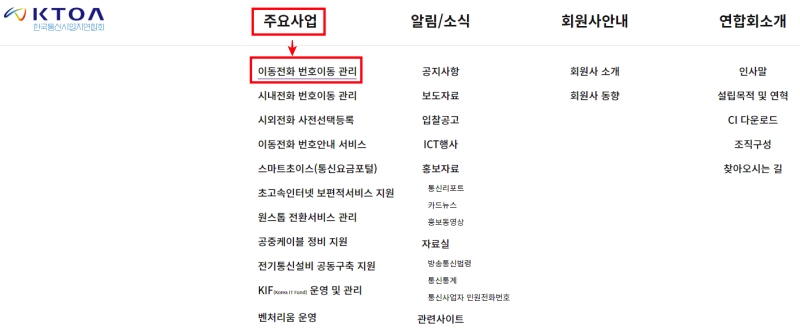 - 한국통신사업연합회사이트에서 이동전화 번호관리로 접속합니다.