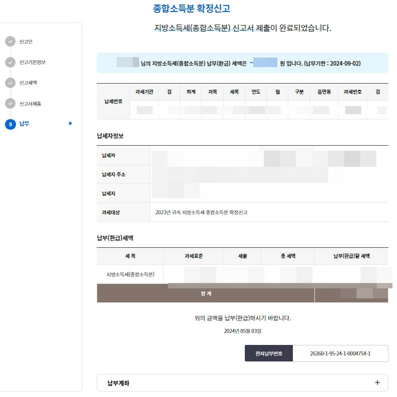 이렇게 개인 지방 소득세 신청이 완료되었습니다.