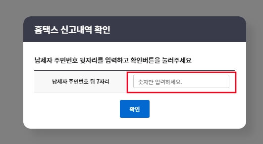 3. '납세자 주민번호 뒷번호'를 입력해 신고내용 확인합니다.