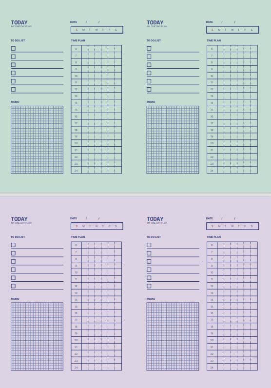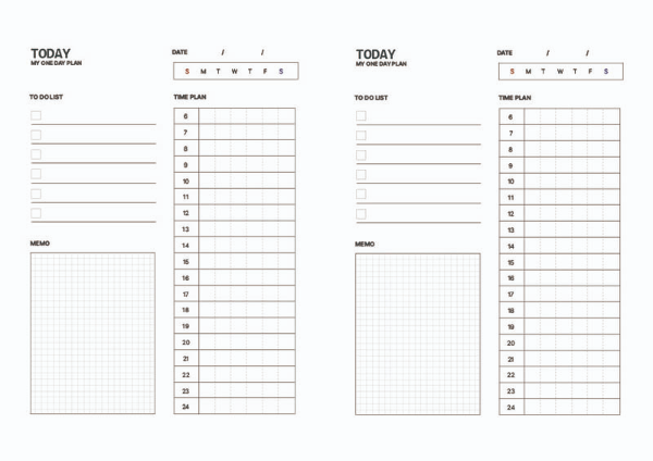 데일리 플래너 타임 트래커 PDF 양식 무료 다운로드 3컬러