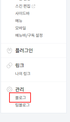 1. 블로그 설정에서 왼쪽 사이드 바에서 관리에서 블로그로 들어갑니다.